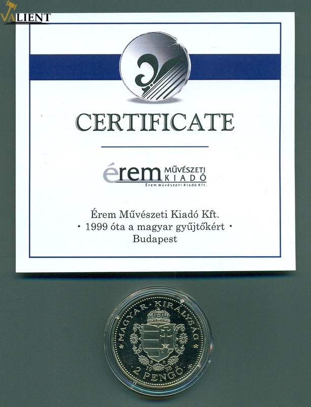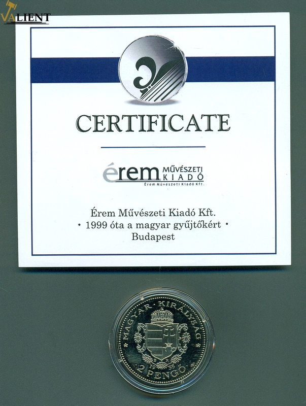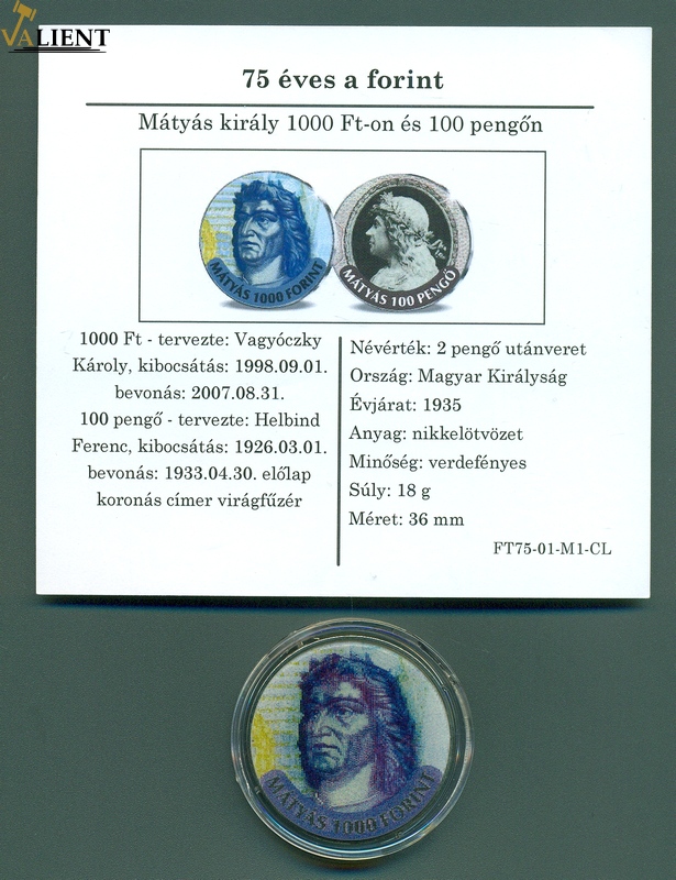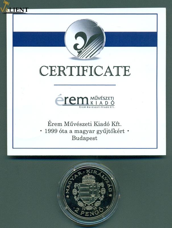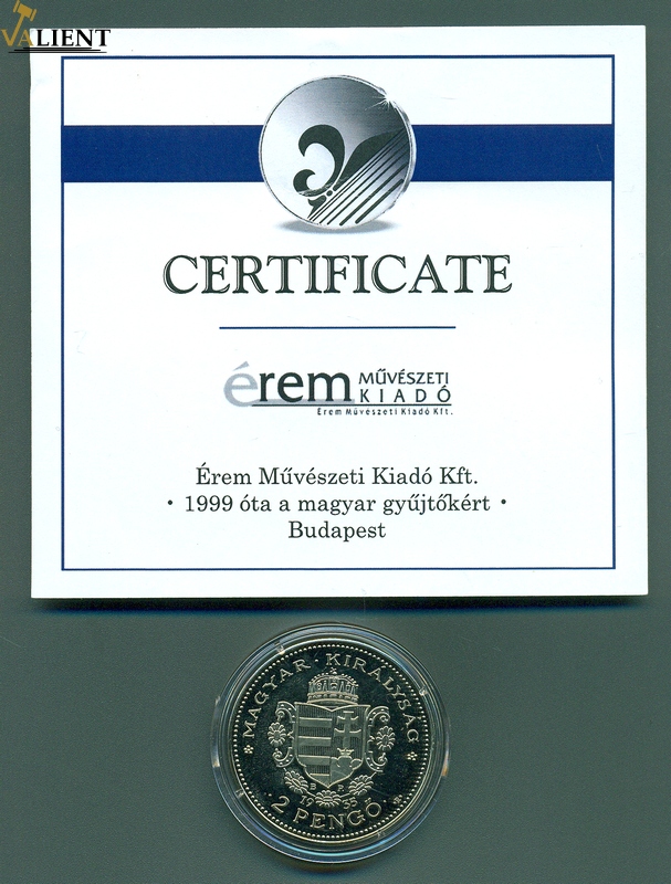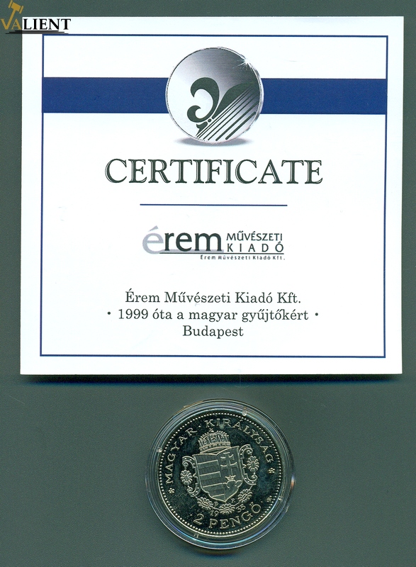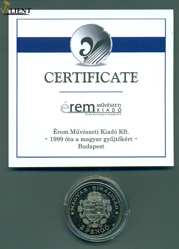ND. / (1935.) 2 Pengő CuNi "Mátyás 1000 Forint / Mátyás 100 Pengő" hologramos emlékkiadás tanúsítvánnyal T/C:BU 3 000 Ft