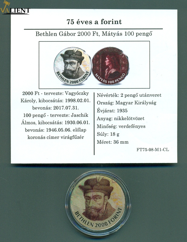 ND. / (1935.) 2 Pengő CuNi "Bethlen 2000 Forint / Mátyás 100 Pengő" hologramos emlékkiadás tanúsítvánnyal T/C:BU 3 000 Ft