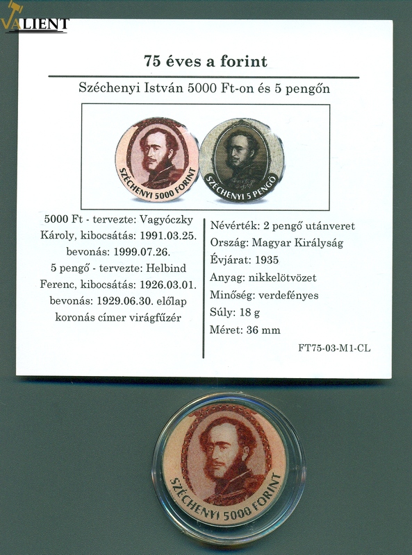 ND. / (1935.) 2 Pengő CuNi "Széchenyi 5000 Forint / Széchenyi 5 Pengő" hologramos emlékkiadás tanúsítvánnyal T/C:BU 3 000 Ft