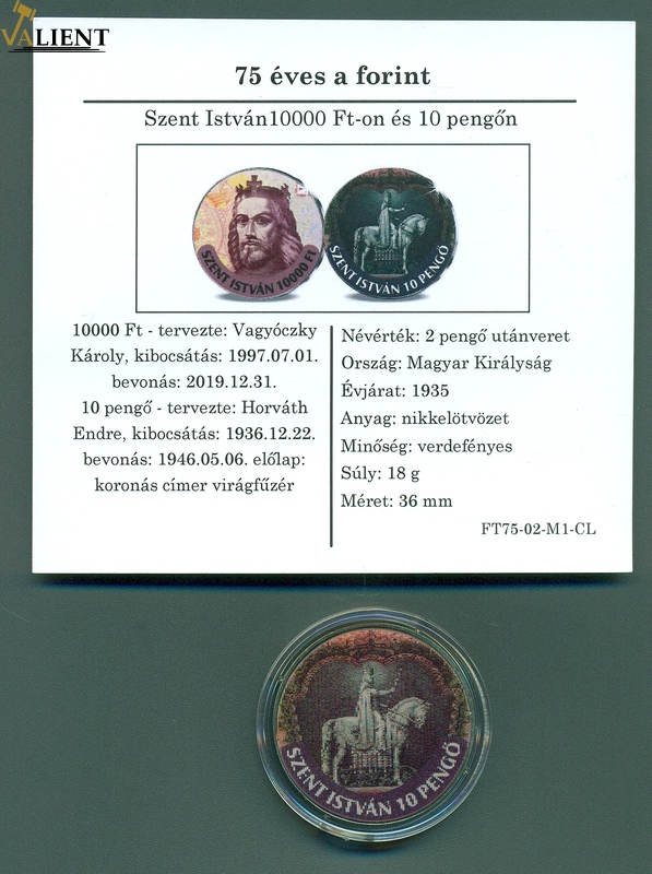 ND. / (1935.) 2 Pengő CuNi "Szent István 10000Ft / Szent István 10 Pengő" hologramos emlékkiadás tanúsítvánnyal T/C:BU 3 000 Ft