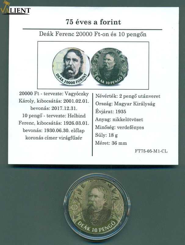 ND. / (1935.) 2 Pengő CuNi "Deák 20000 Forint / Deák 10 Pengő" hologramos emlékkiadás tanúsítvánnyal T/C:BU 3 000 Ft