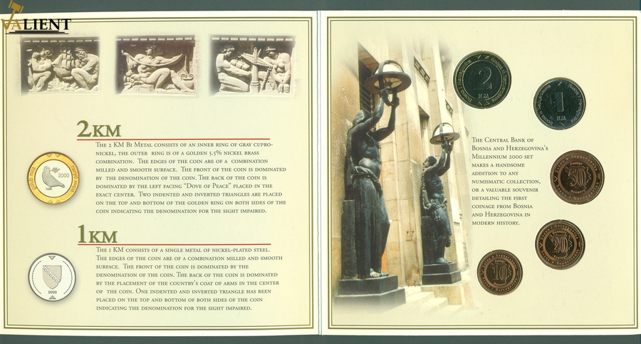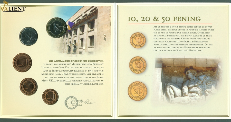 Bosznia-Hercegovina 2000. 5db-os forgalmi sor eredeti banki dísztokban T/C:BU SCWC MS1 5 000 Ft