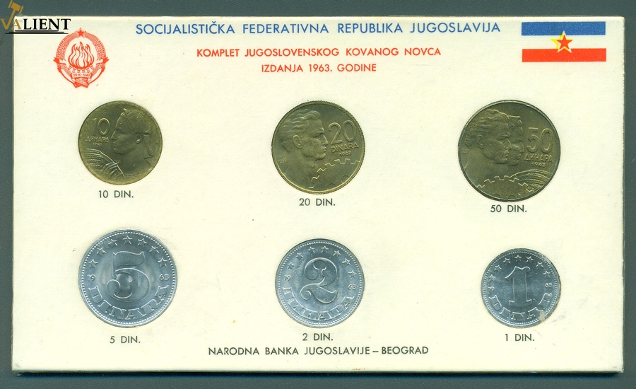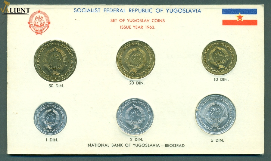 Jugoszlávia 1963. 1 Dinar - 100 Dinara / 6db-os forgalmi sor eredeti banki csomagolásban T/C:BU SCWC MS2 3 400 Ft