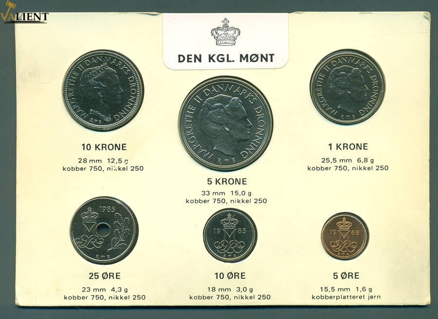 Dánia 1985. 5 Öre - 5 Kroner / 6db-os forgalmi sor eredeti banki csomagolásban T/C:BU SCWC MS30 7 000 Ft