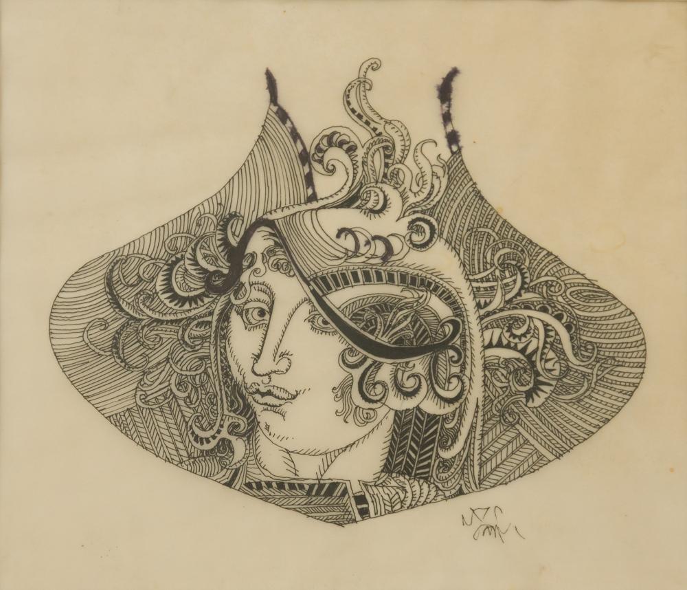 Kozma István (1937-2020): Férfi portré (Kolozsvár 1957). Akvarell, papír, jelezve balra lenn, üvegezett keretben, 50×35 cm 30 000 Ft
