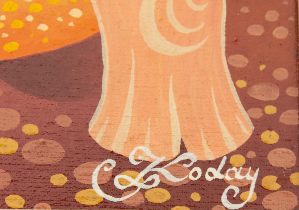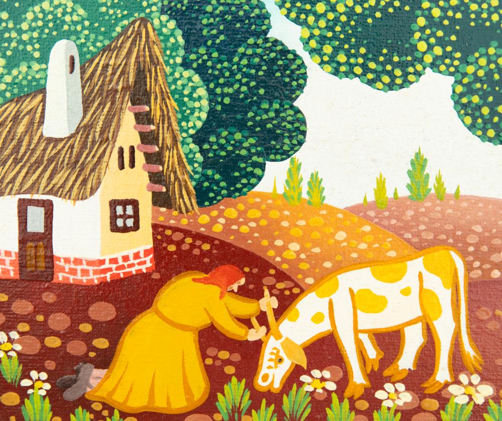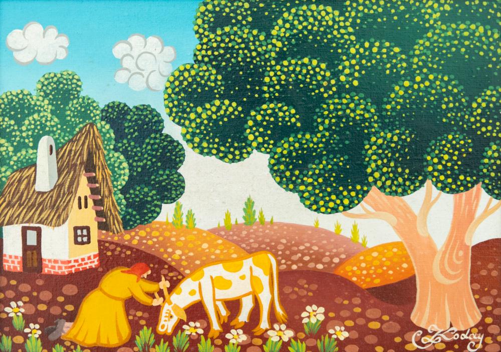 Koday László (1945-): Tehénke. Olaj, vászon, jelzés jobbra lenn, keretben, 18×25 cm 28 000 Ft