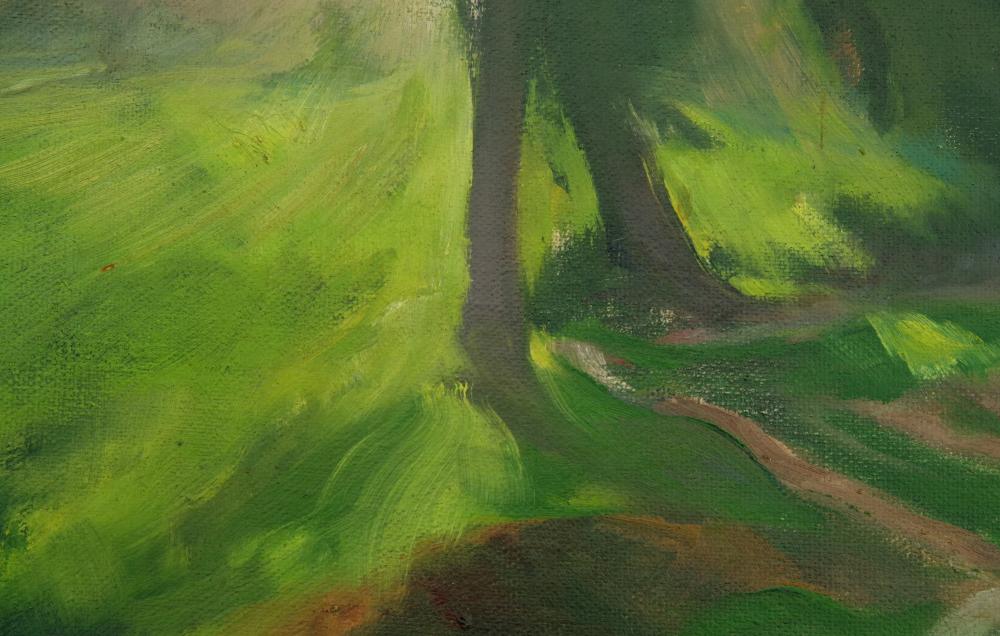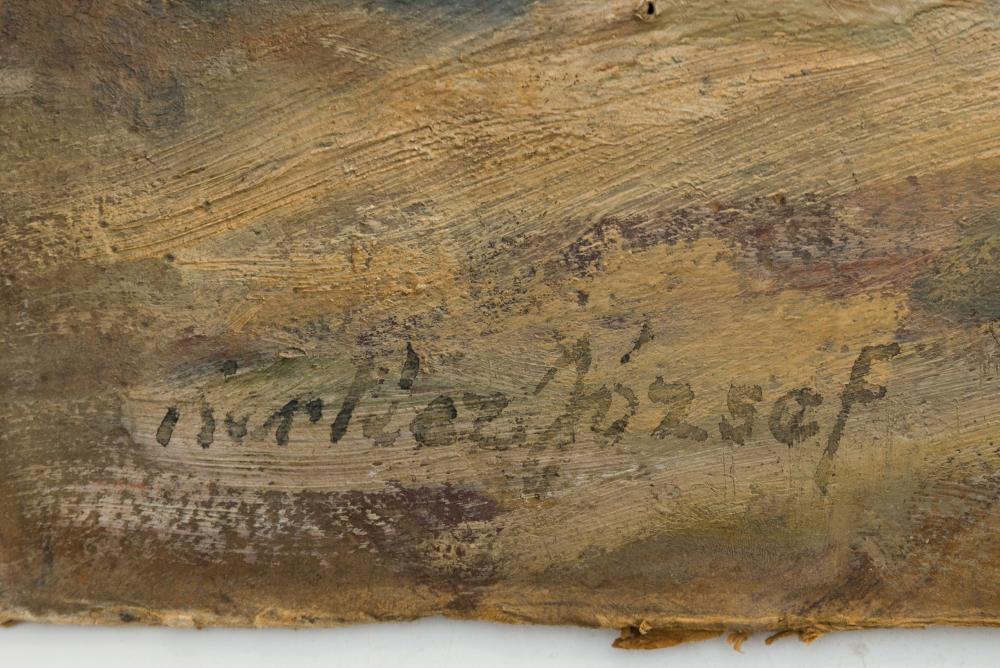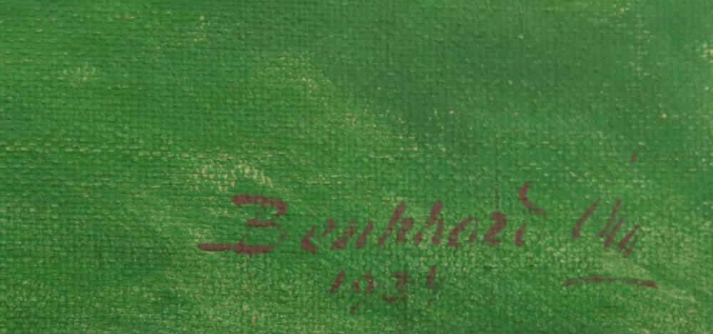 Benkhard Ágost (1882-1967): Alföld. Olaj, vászon, jelzés jobbra lenn, kopott, hibás keretben, tísztításra szorul, 70×60 cm 60 000 Ft