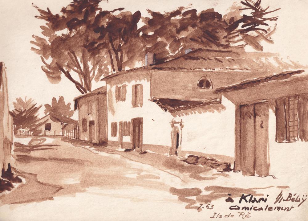 Korolovszky Klári (1921-1974):Ilede de Ré 1963 (Franciaország). Diópác, papír jelzés jobbra lent, apró szakadás a szélén. 23x32 cm 12 000 Ft