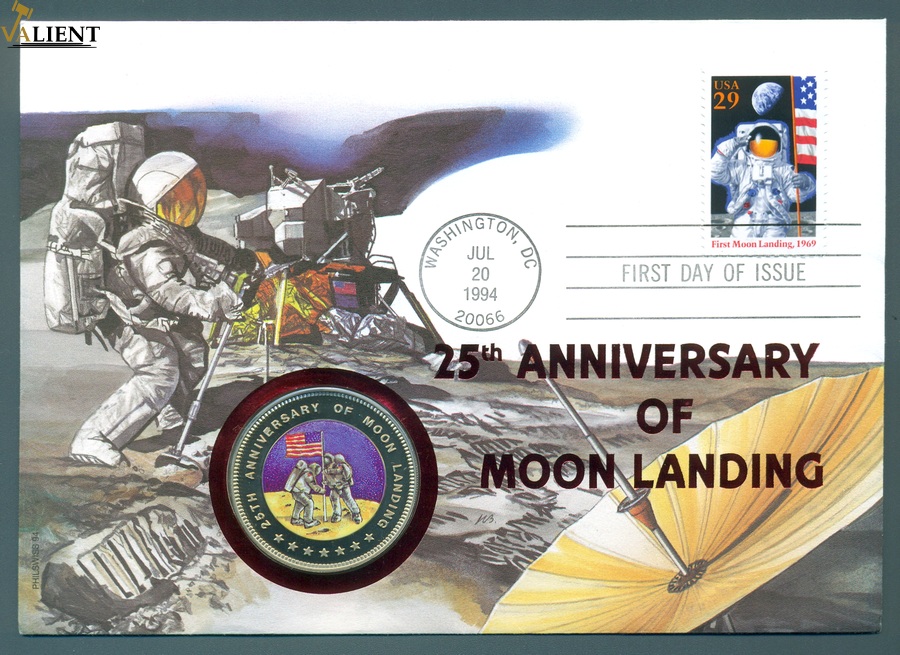Egyenlítői-Guinea 1994. 1000 Francs CuNi "A Holdra szállás 25. évfordulója" bélyeges borítékban, elsőnapi bélyegzéssel T/C:PP SCWC KM# 92 3 200 Ft