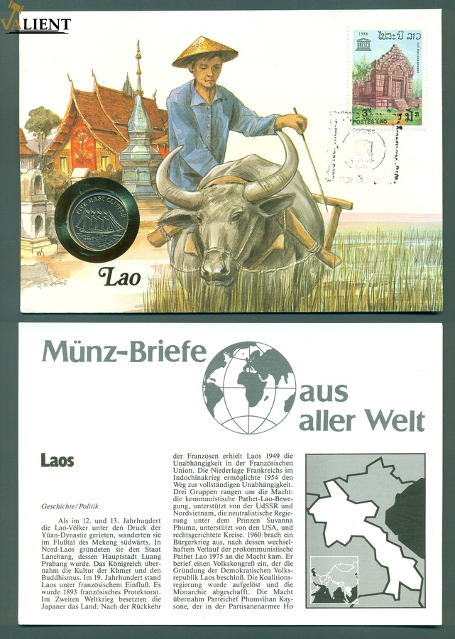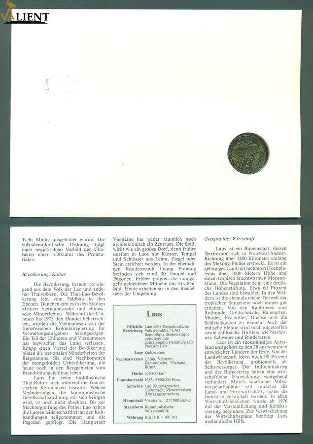 Laosz 1988. 10 Kip CuNi "Ötárbocos klipper" bélyeges borítékban, elsőnapi bélyegzéssel, német nyelvű leírással T/C:BU SCWC KM# 101 2 600 Ft