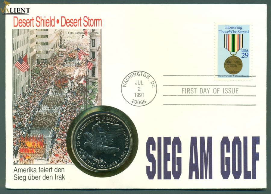 Marshall Szigetek 1991. 5 Dollars CuNi "A Sivatagi Vihar hőseinek emlékére" bélyeges borítékban, elsőnapi bélyegzéssel T/C:P SCWC KM# 40 2 000 Ft