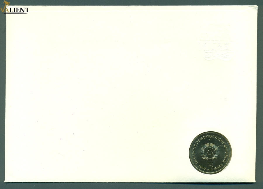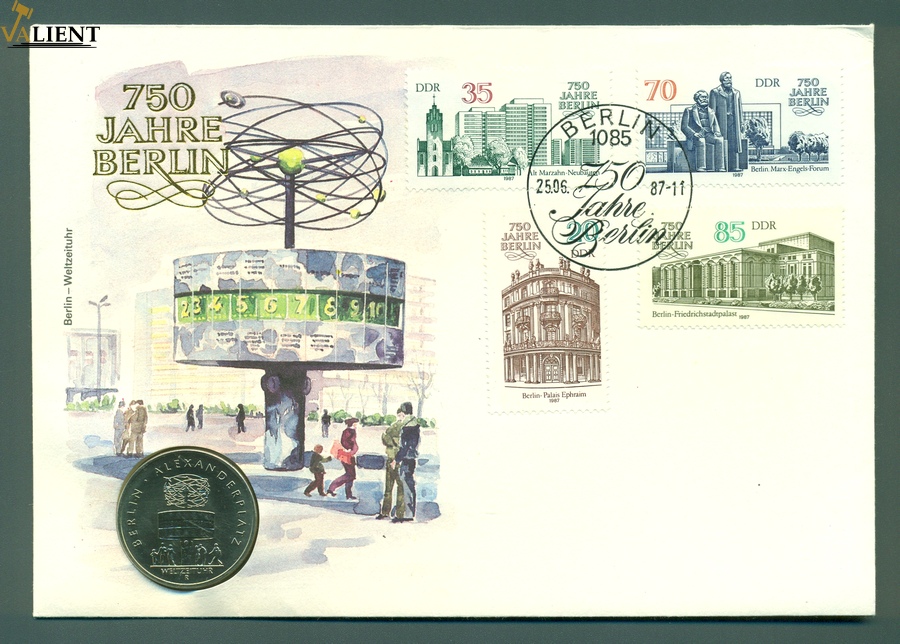NDK 1987. 5 Mark CuNi "750 éves a Berlini Alexanderplatz" bélyeges borítékban, elsőnapi bélyegzéssel T/C:BU SCWC KM# 116 2 000 Ft