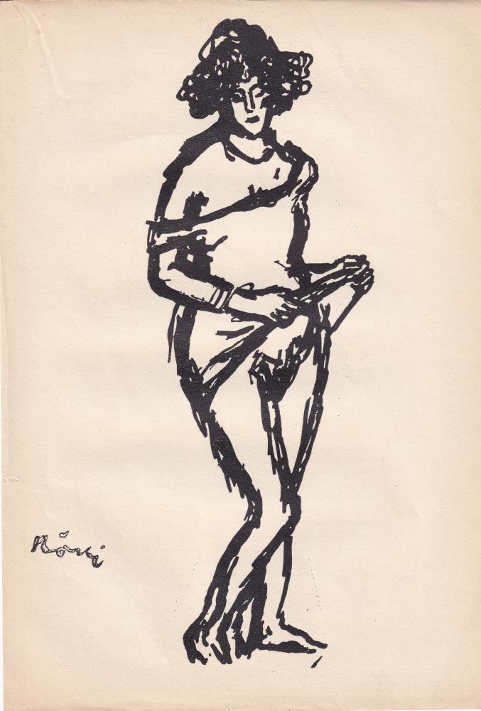 Rippl-Rónai József (1861-1927): Hálóinges akt. Cinkográfia, papír, jelzés a cinkográfián, 25×17 cm 5 000 Ft
