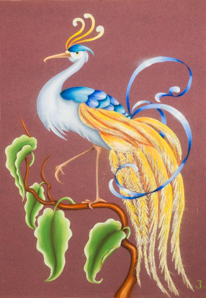 Ismeretlen (J.) alkotó: Páva, vegyes technika, papír, jelzés jobbra lent, 63x44,5 cm 26 000 Ft