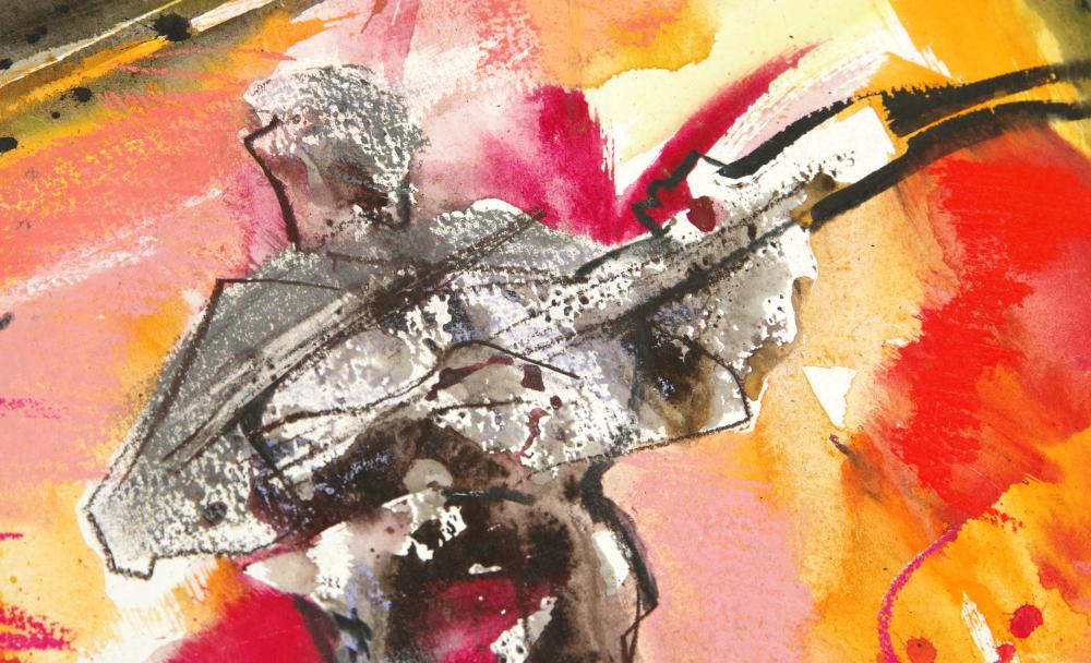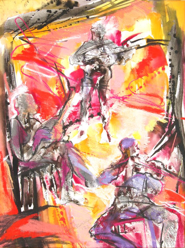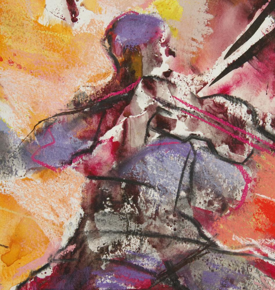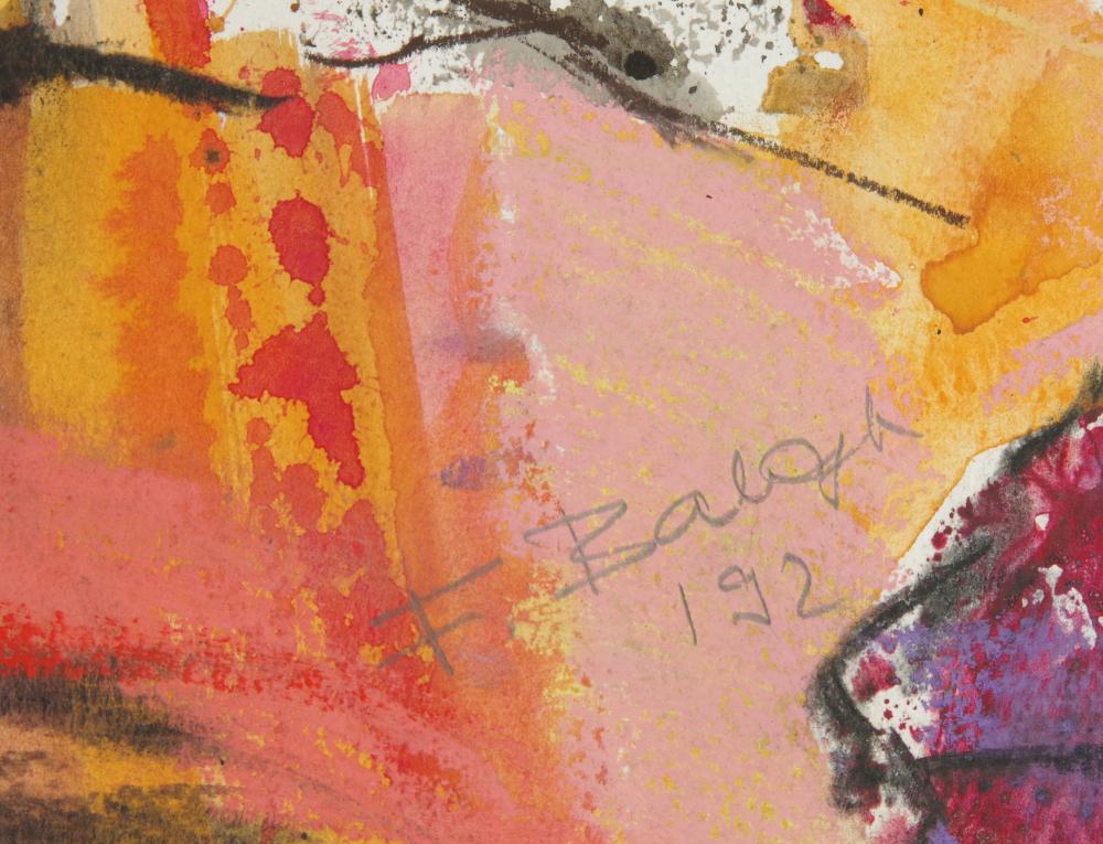 F.Balogh Erzsébet (1955-): Koncert. Akvarell, papír, jelezve középen lenn, fóliában, 62×47 cm 18 000 Ft
