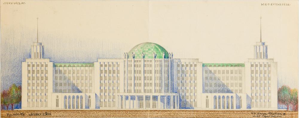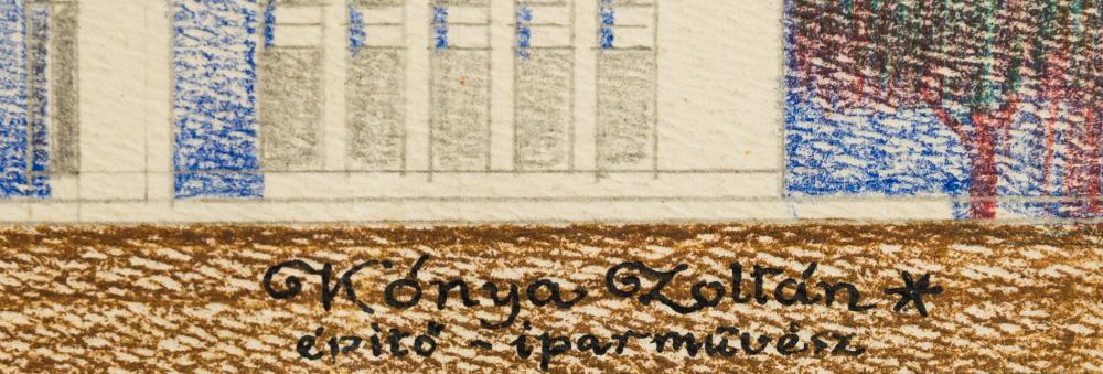 Kónya Zoltán (1891-): M.R.T. építkzés 1931 (terv vázlat). Színes ceruza, papír, hajtott, jelzés jobbra lenn, 17×42,5 cm 18 000 Ft