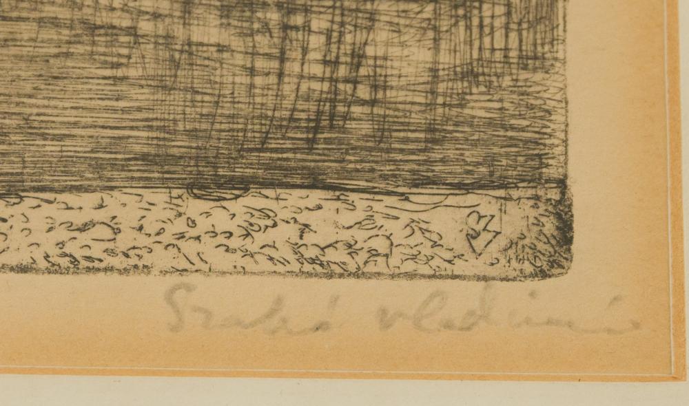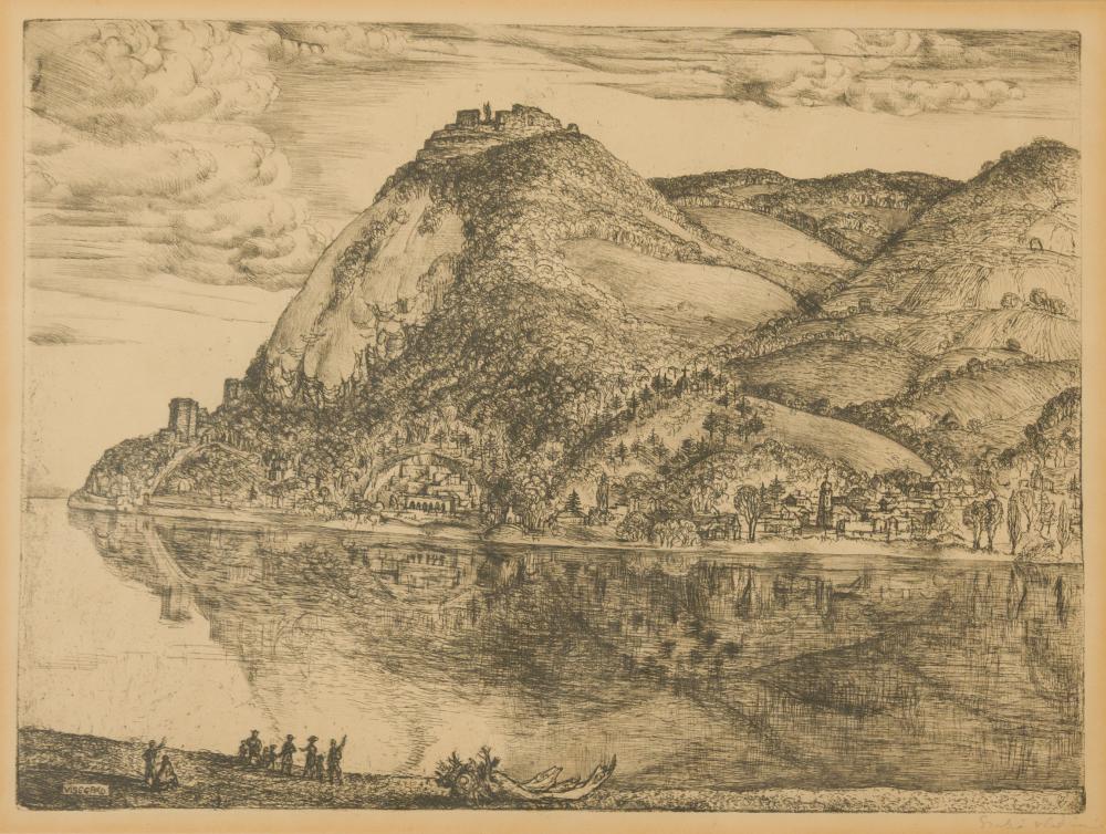 Szabó Vladimir (1905-1991): Visegrád. Rézkarc, papír, jelzés jobbra lenn, üvegezett keretben, 30×40 cm