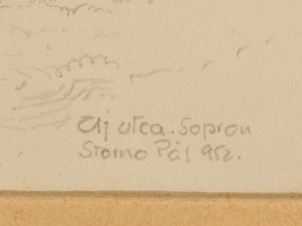 Stornó Pál (1892-1962): Zaj utca. Sopron. Ceruza, papír, jelezve jobbra lenn, üvegezett keretben, 29×19,5 cm 12 000 Ft