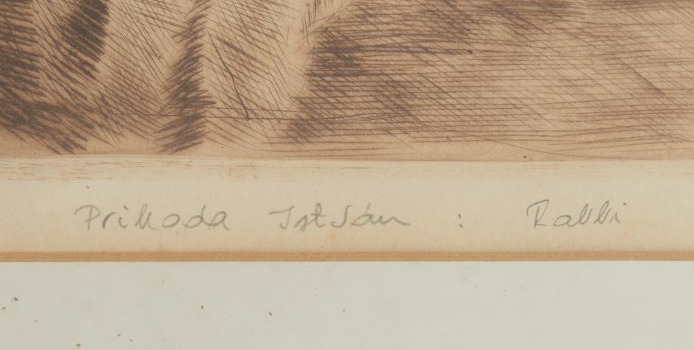 Prihoda István (1891-1965): Rabbi. Rézkaec, papír, jelezve jobbra lenn, modern üvegezett keretben, 40×30 cm 12 000 Ft