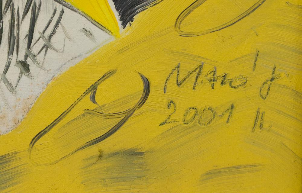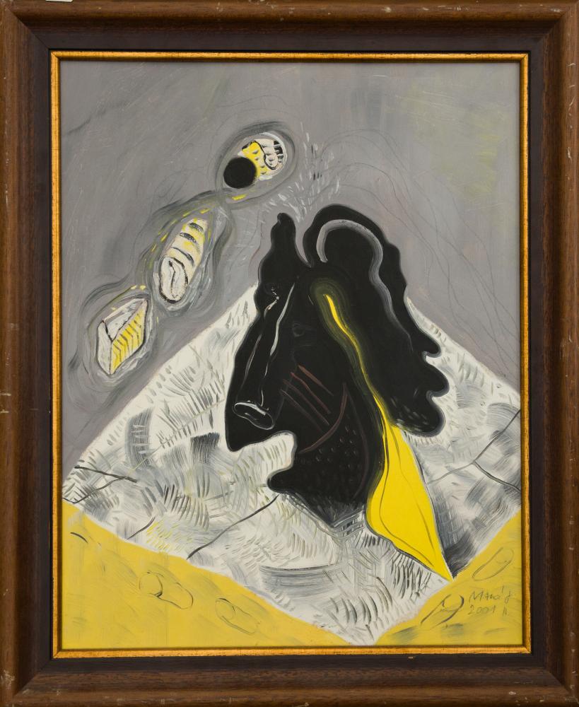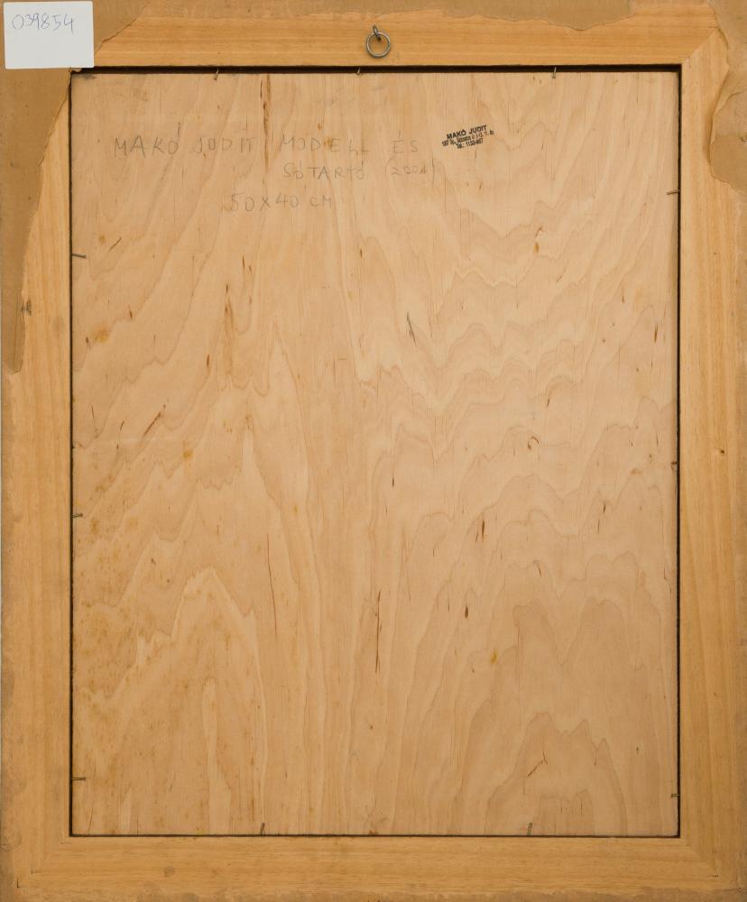 Makó Judit (1954-): Modell és sótartó 2001. Olaj, fa, jelzés jobbra lenn, hibás keretben, 50×40 cm 38 000 Ft