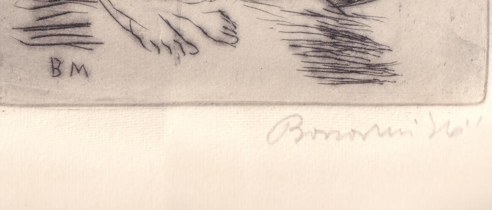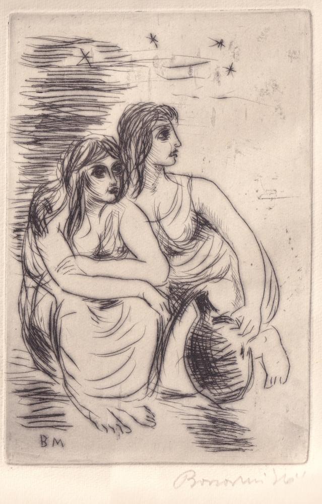Borsos Miklós (1906-1990): Barátnők. Rézkarc, papír, jelzés jobbra lenn, felcsavarva, 13×9 cm 5 000 Ft