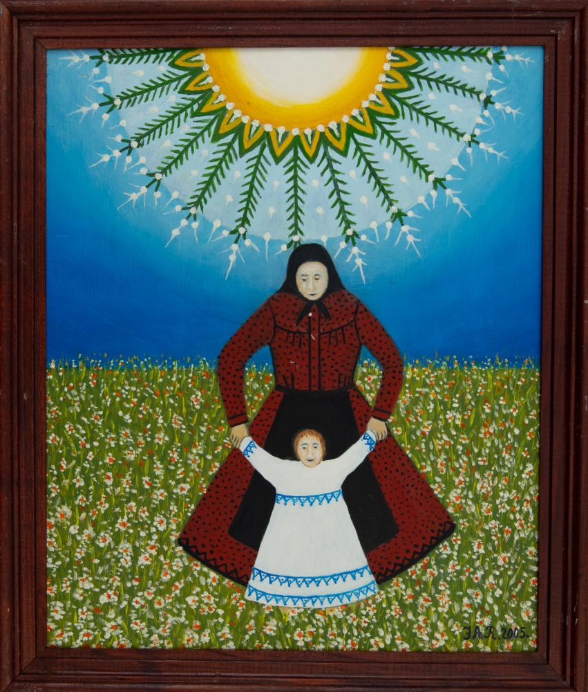 Juhászné Albert Rozália (1928-2016): A kis tipegő. Olaj, farost jelezve jobbra lenn, keretben, 36,5×30,5 cm 18 000 Ft