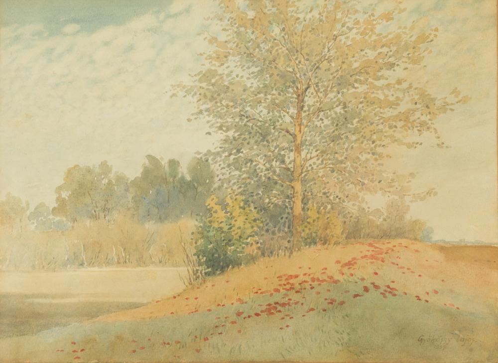 Gyökössy Lajos (1880-?): Tavasz. Akvarell, papír, jelezve jobbra lenn, üvegezett keretben, 21×29 cm 12 000 Ft