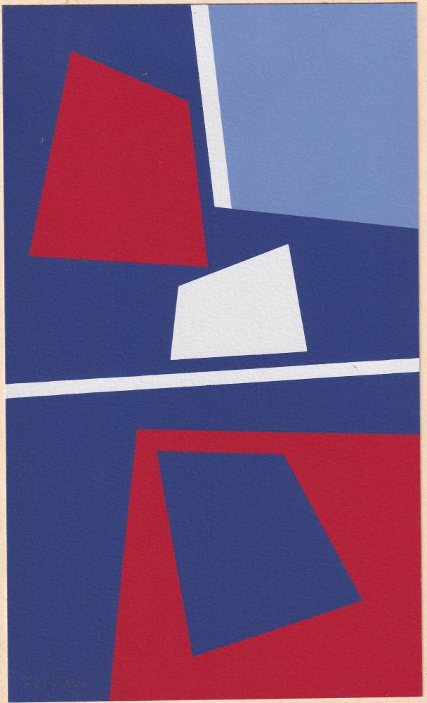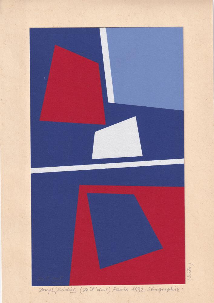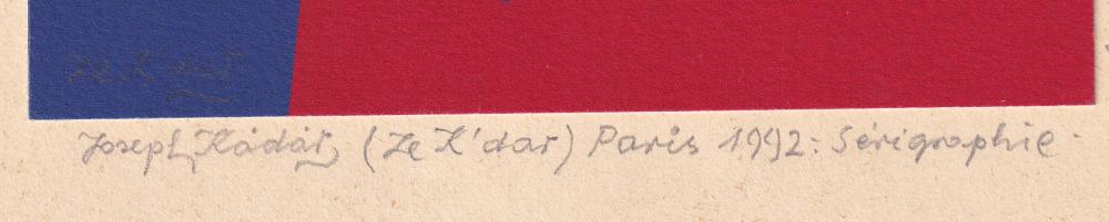 Joseph Kadar (1936-2019): Álló kompozició 1992. Szitanyomat, papír, jelzés balra lenn, 25×15 cm 28 000 Ft