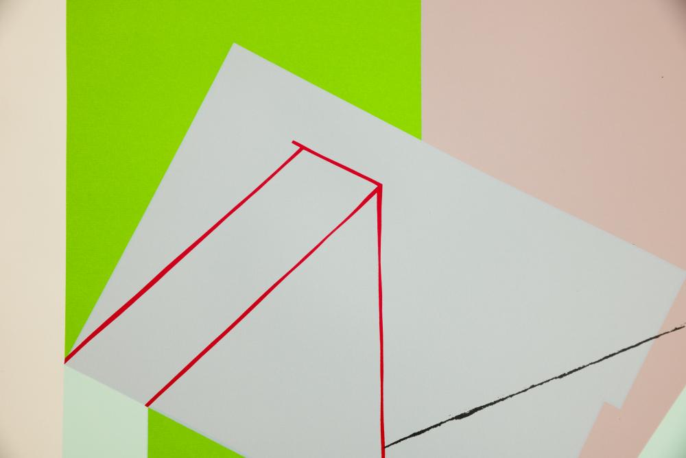 Paco Pomet (1970-): El frente (2023). 6 színű szitanyomat Somerset Radiant White Tub Sized papíron A művész által kézzel utólag kidolgozott. Tépett szélek, üvegezet keretben, jelzés jobbra lent. 16/80, 80 x 51,3 cm