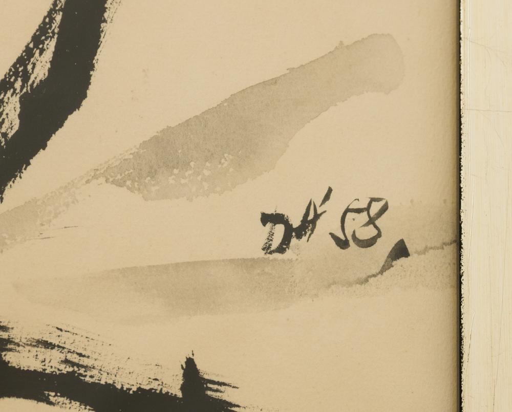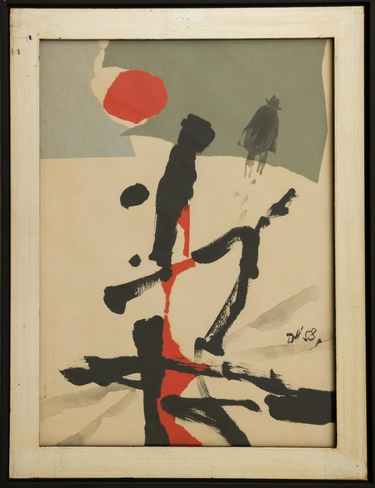 Darvas Árpád (1927-2015): Magány. Kollázs, vegyes technika, papír, jelezve jobbra középen, üvegezett keretben, 37×28,5 cm 30 000 Ft