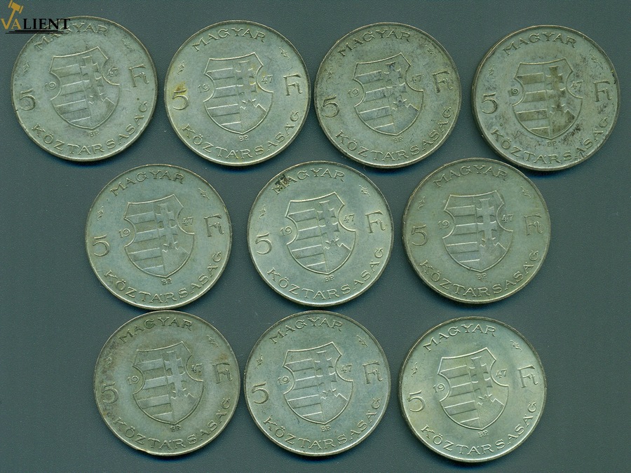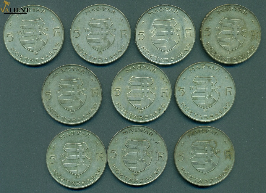 1947. 5 Forint Ag "Kossuth Lajos" 10 darabos tétel T/C:Mix Adamo F8.1 28 000 Ft