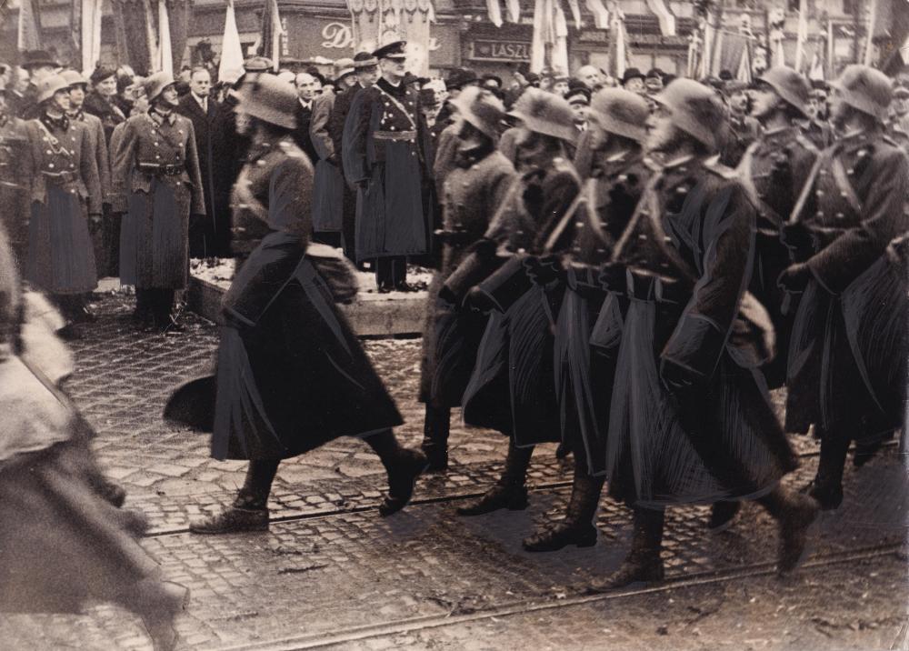 Horthy Miklós bevonulása Kassára 1938. november 11-én, eredeti sajtófotó (Agfa Brovira), retus részekkel, 17×24 cm 12 000 Ft