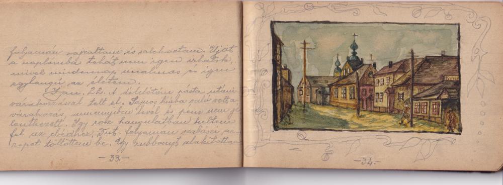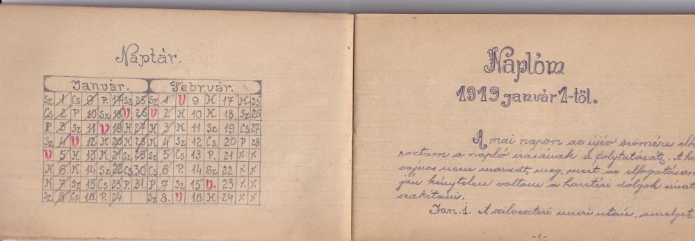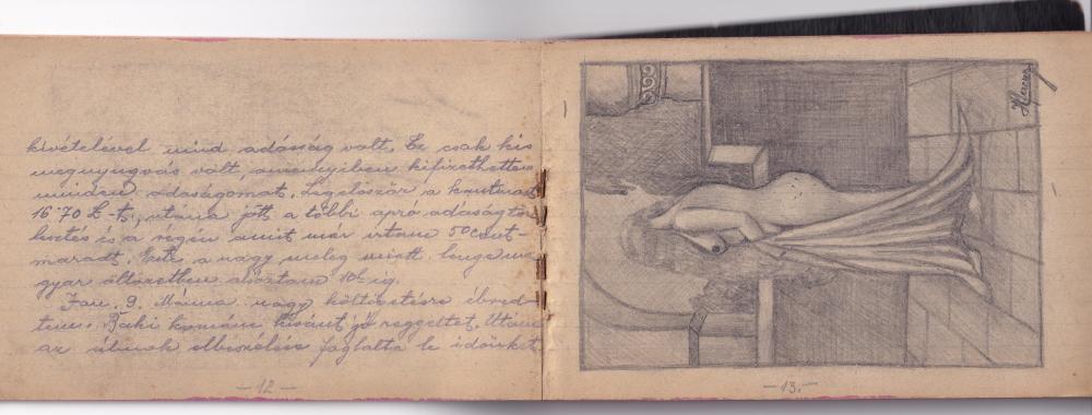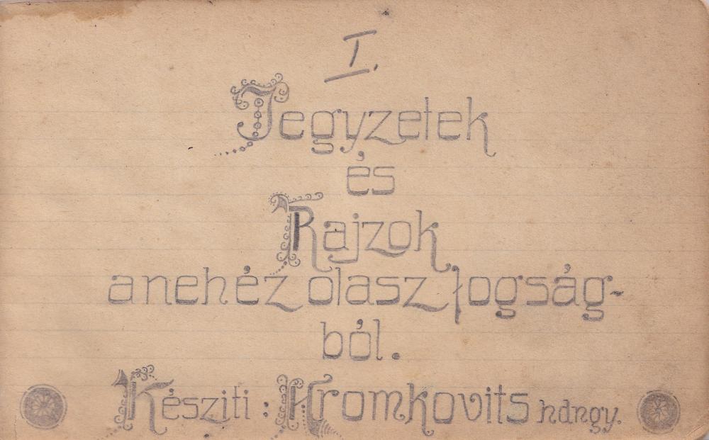 Jegyzetek és rajzok a nehéz olasz fogságból. Készíti : Hromkovits hdngy. 1919. január 1-től február 18-ig. Összesen 100 oldalas, 8 db grafikával, gerinc leváló félben 24 000 Ft