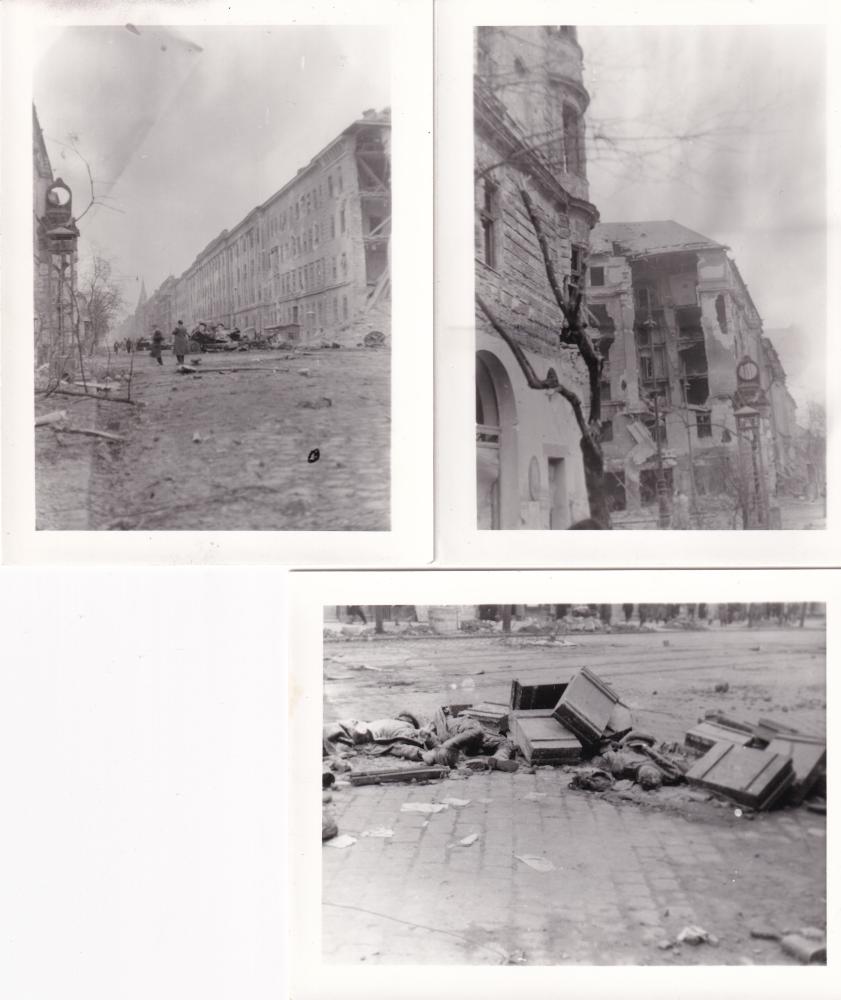 1956 Budapest Ferenc körüt, Üllői út, A forradalom eseményei képeken (szétlőtt ház, halottak), későbbi előhívások, 3 db fotó, 11,5x9 cm 2 000 Ft
