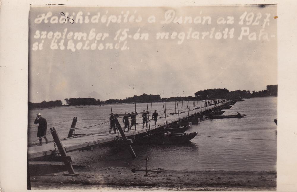 1927.09.15. Paks hadihídépítése a Dunán, hadgyakorlat, képeslapfotó, 8,5×14 cm 2 000 Ft