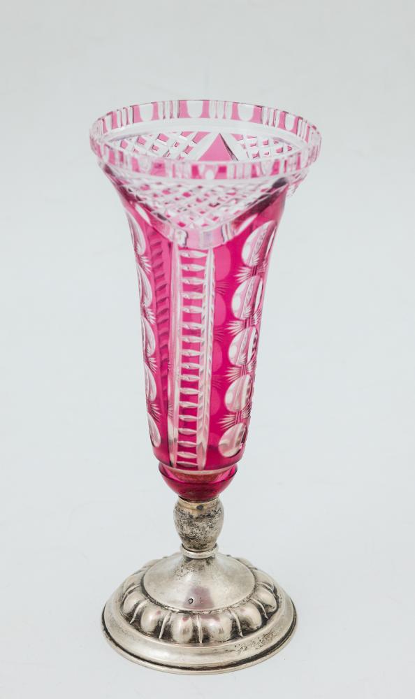 Ezüst (Ag.) talpas ólomkristáy váza, Dianás fémjellel, több rétegű csiszolt, hibátlan, m:25 cm, bruttó:450 gr.