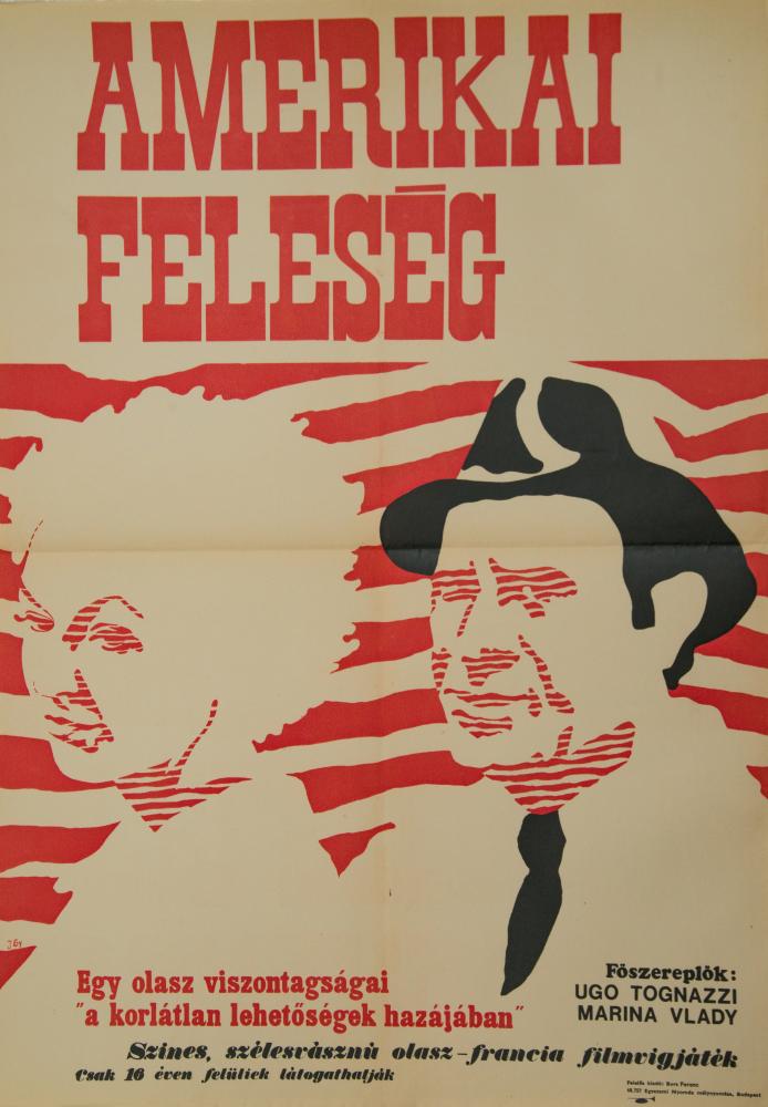 Amerikai feleség (1966). Rendezte: Gian Luigi Polidoro. Szereplők: Ugo Tognazzi, Marina Vlady, Rhonda Fleming. Plakáttervező: J.Gy. Hajtott, felcsavarva, 56,5×40cm 6 000 Ft