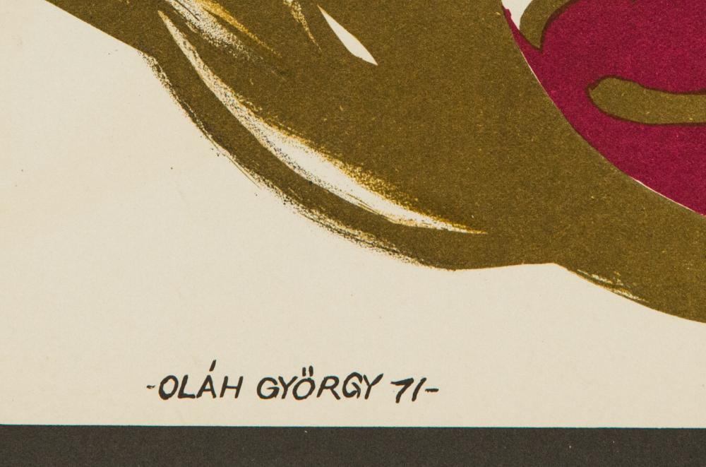A hölgy nem iszik, nem dohányzik, nem flörtöl... csak fecseg (1970). Rendezte: Michel Audiard. Szereplők: Jean Carmet, Annie Girardot, Bernard Blier, Robert Dalban. Plakáttervező: Oláh György (1971). Hajtott, felcsavarva, 58×40 cm 6 000 Ft
