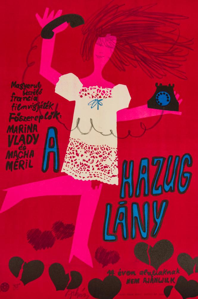 A hazug lány (1961). Rendezte: Michel Deville. Szereplők: Marina Vlady, Macha Méril, Michel Vitold. Plakáttervező: Szilvásy Nándor (1963). Hajtott, felcsavarva, 56×39 cm 6 000 Ft