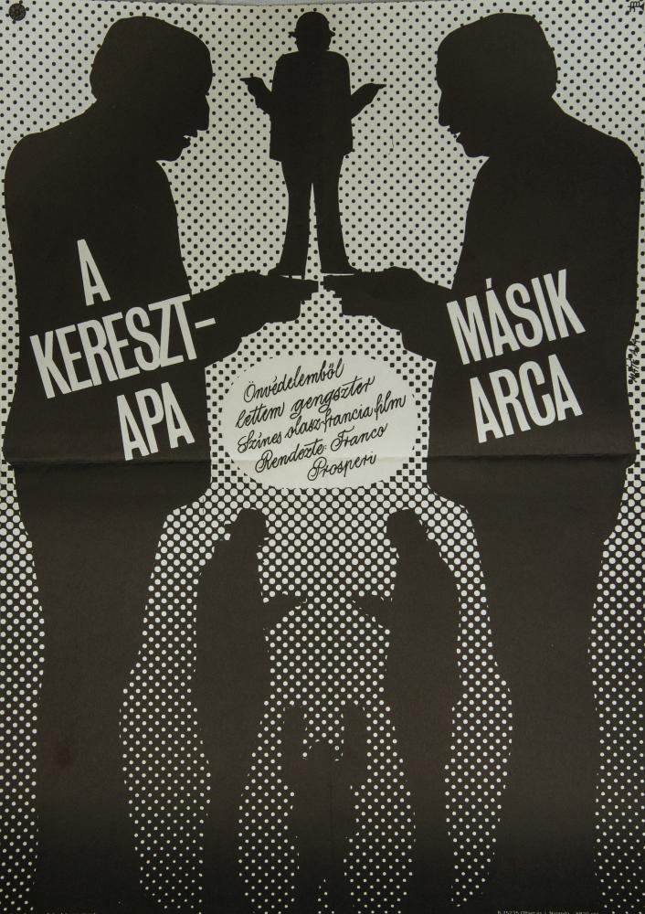 A keresztapa másik arca (1973). Rendezte: Franco Prosperi. Szereplők: Raymond Bussières, Fausto Tozzi, Stefano Satta Flores, Alighiero Noschese. Plakttervező: Máté András (1974). Hajtott, felcsavarva, 56×39,5 cm 6 000 Ft