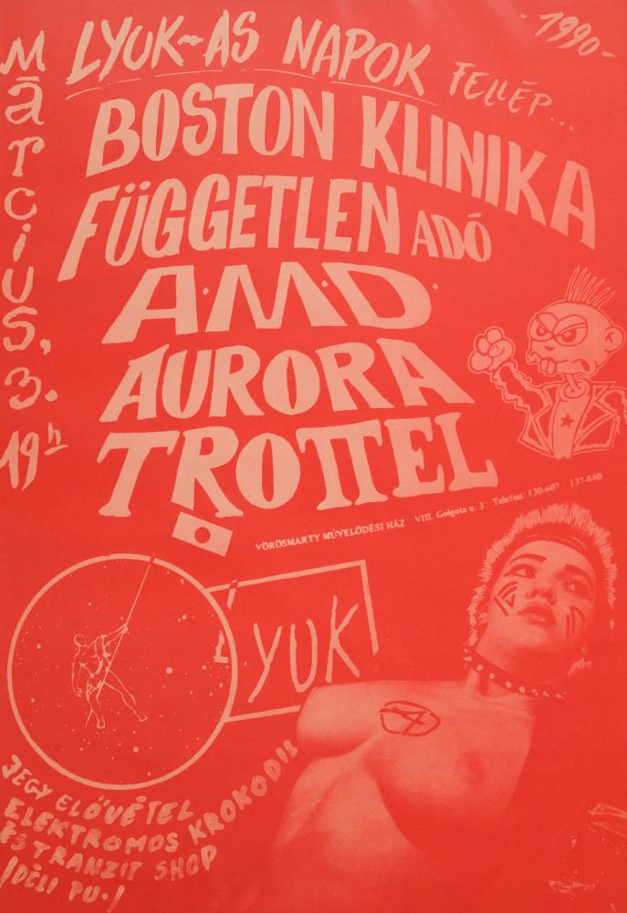 Lyuk-as napok (1990.03.19.) Boston Klinika, Független adó, AMD, Auróra, Trottel. Paszpartuban, fóliában, 55,5×40 cm 40 000 Ft